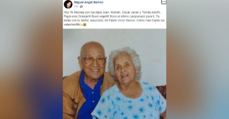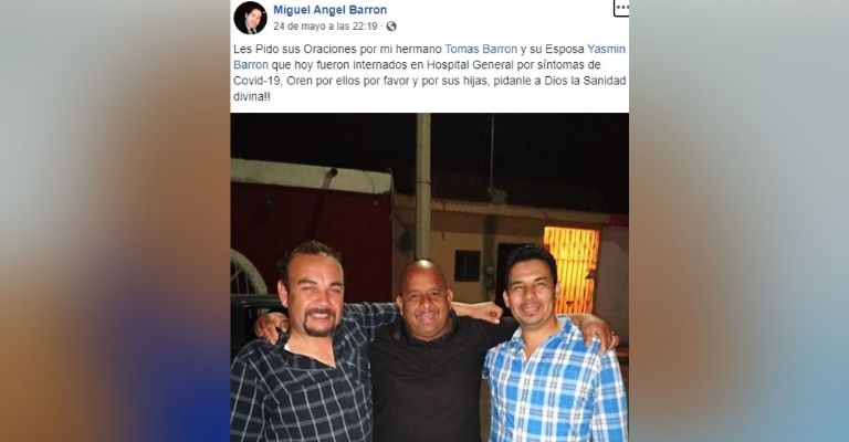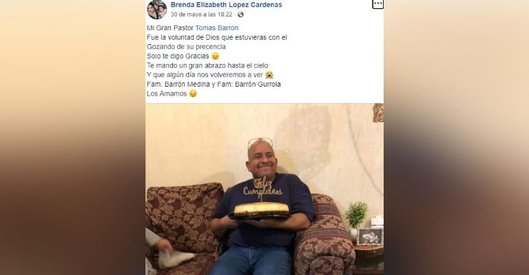 De momento se sabe que él perdió la vida un hospital de la localidad por causas desconocidas hasta el momento, sin embargo se sabe que su hijo Tomás Barrón, un conocido predicador en el municipio, murió a causa delcoronavirus.