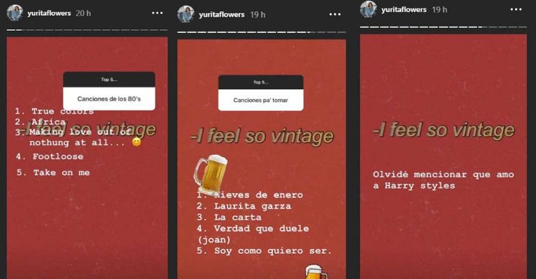 Luego de mencionar cuáles son sus canciones favoritas de los 80, las películas que más le gustan, que su top de artistas favoritos lo lideraMiley Cyrusy que “ama” por completo aHarry Styles, la cantante también respondió a la curiosidad de sus fans sobre su top cinco de “canciones para tomar”.