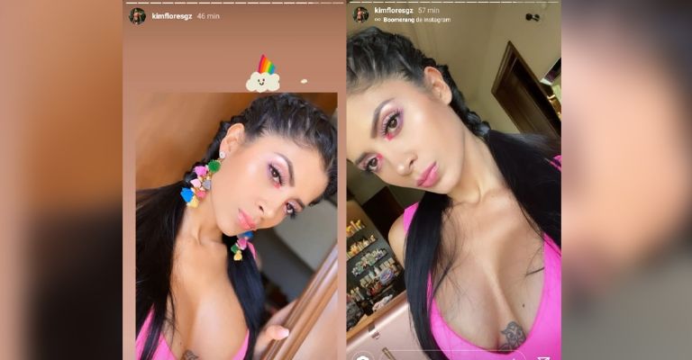 Kimberly presumió sus atributos delanteros al lucir una blusa rosa con un profundo escote que dejó poco a la imaginación y además, resaltó su rostro con un encantador maquillaje colorido.