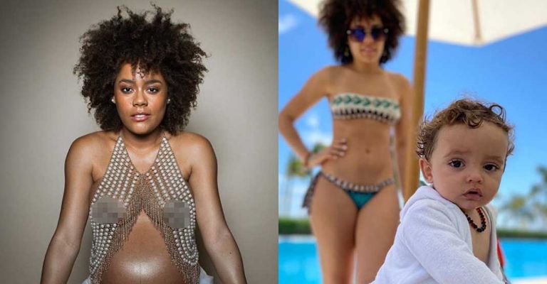 En la segunda imagen, la también actriz aparece portando un bikini observando a su hijoTadeo.
