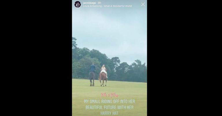 FueJacobi Anstruther-Gough-Calthorpe, hermano de Cressida, quien advirtió que la famosa celebró su especial boda al compartir en Historias deInstagramimágenes de la pareja cabalgando por un despejado y verde campo.