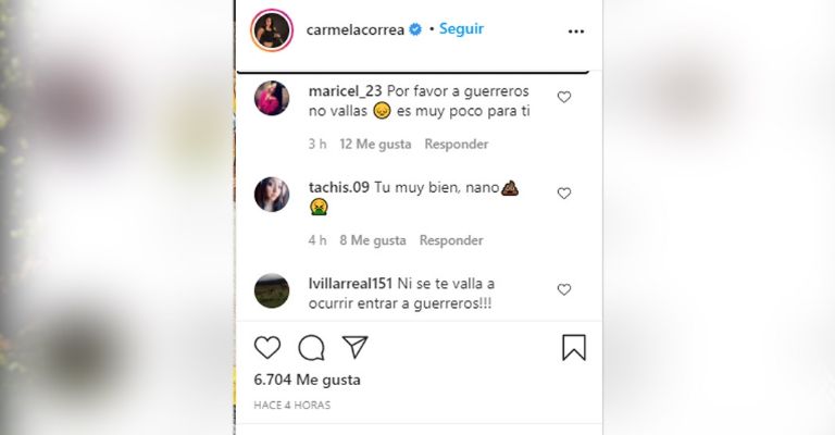 En respuesta, los fieles seguidores de Carmela dejaron sus opiniones en la bandeja de comentarios y especularon con una posible llegada aGuerreros 2020, proyecto en el que ya hay exintegrantes deExatlón.