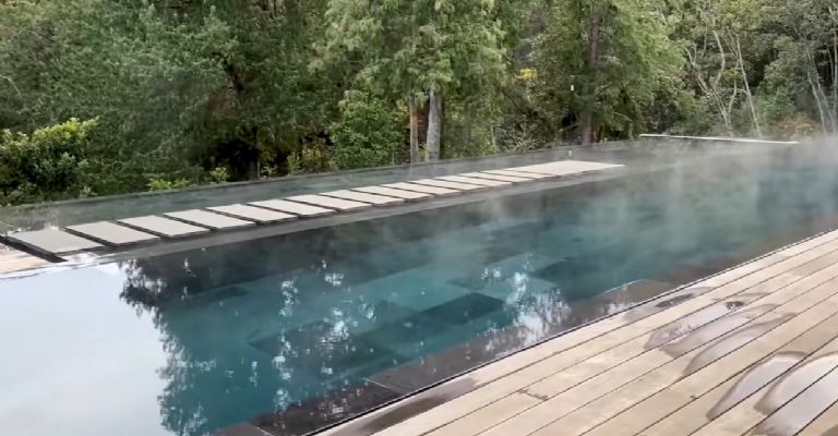 Después continuo el recorrido enseñando la cocina, habitaciones para los visitantes, el patio con una gran piscina con vista perfecta a la naturaleza y garaje.