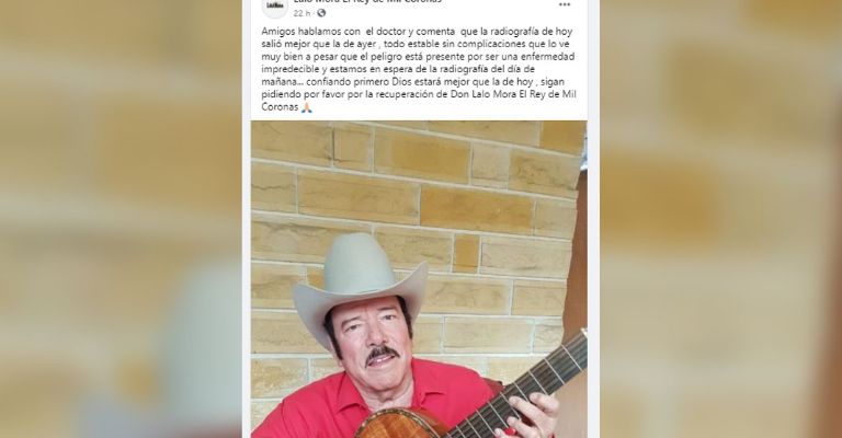 Buen día querido público, hoy ya nos comunicaron que los resultados de las radiografías de Don Lalo Mora van mejorando, vamos bien bendito Dios, espero seguir contando con su apoyo y sus oraciones como hasta hoy. ¡Gracias mil!”, se escribió en Facebook.