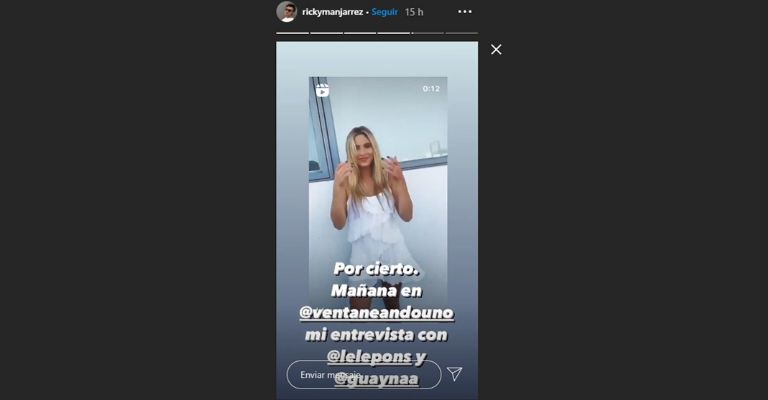 Por cierto, mañana en @ventaneandouno mi entrevista con @lelepons y @guaynaa”, escribió Ricky.
