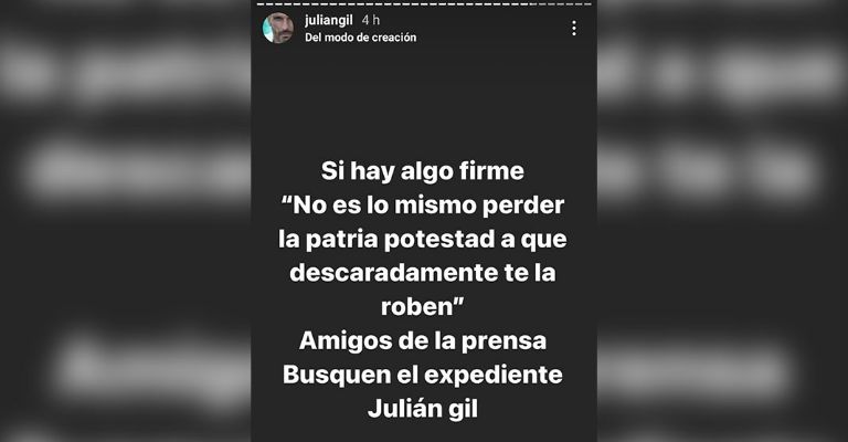 Si hay algo firme: No es lo mismo perder la patria potestad a que descaradamente te la roben. Amigos de la prensa busquen en el expediente Julián Gil”, escribió el actor.