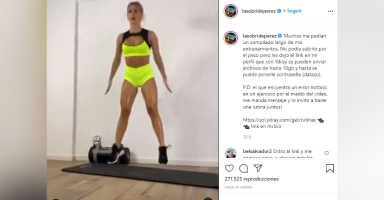 Buenos Aires, Argentina.-La ‘Chica del clima‘ argentina,Sol Pérez, por medio de su cuenta deInstagramcompartió una recopilación de sus rutinas de ejercicio.