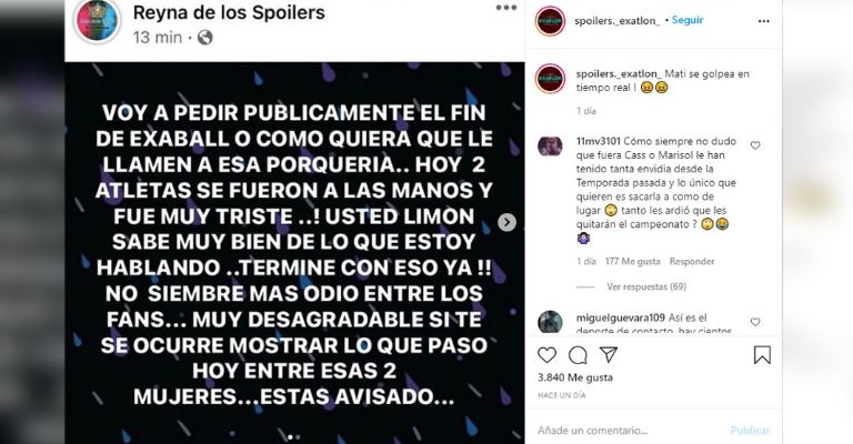 Fuente: Just Keyla e Instagram @spoilers._exatlon_
