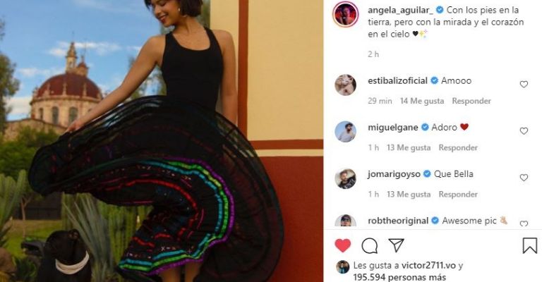 La joven cantante de apenas17 añosrecurrió a su cuenta en mencionada red para con una entallada blusa de color negro que combinó con una falda mexicana, provocar a propios y extraños por sus pies descalzos.