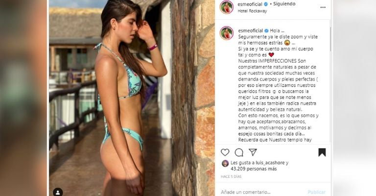 Si te pones a pensar eso que tanto te preocupa de tu físico qué si la estría, la celulitis, el granito, la manchita de sol, la cicatriz son pequeñeces, lo que importa está adentro de ti, ese es tu poder”, escribió Esmeralda.