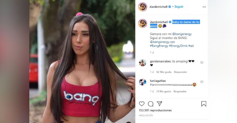 En la instantáneas se observa a la influencer degustando de una bebida energizante, mientras le realizan diversas tomas por partes de su cuerpo.