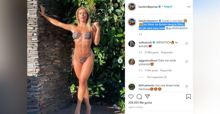 Buenos Aires, Argentina.-La ‘Chica del clima‘ argentinaSol Pérez, por medio de su cuenta deInstagramcompartió una llamativa imagen en la cual se le pudo ver derrochando belleza en traje de baño.