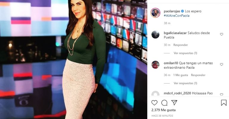 En esta ocasión Paola, quien recientemente cumplió44 años, deslumbró a la audiencia al lucir una encantadora falda blanca que resaltó su tremenda delgadez y una blusa de color verde esmeralda, accesorios dorados y el cabello con ligeras ondas.