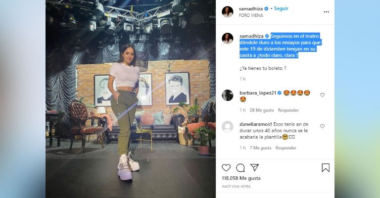 Seguimos en el teatro dándole duro a los ensayos para que este 19 de diciembre tengan en su casita a ¿todo claro, clara?”, escribió.