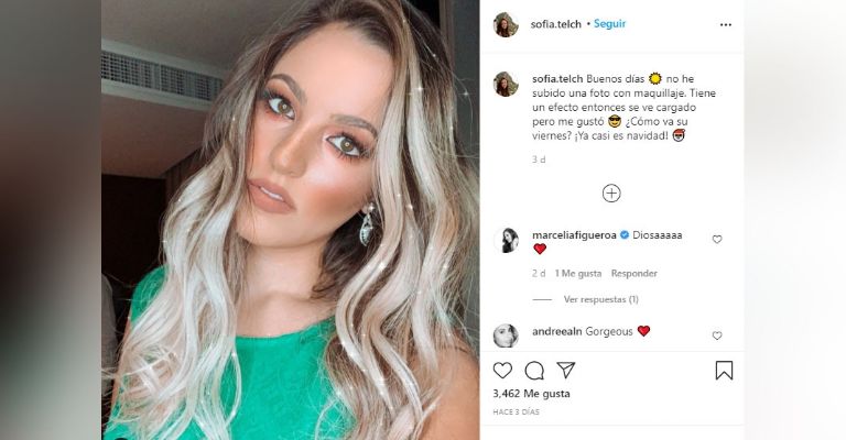 Buenos días, no he subido una foto con maquillaje. Tiene un efecto entonces se ve cargado pero me gustó ¿Cómo va su viernes? ¡Ya casi es navidad!”, escribió.