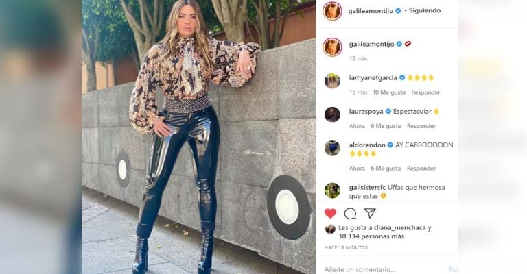 Fue un ceñido jean de piel que combinó con unos enormes tacones del mismo material que Gali consiguió desatar un mundo de emociones entre la audiencia, internautas y ni se diga sus admiradores.