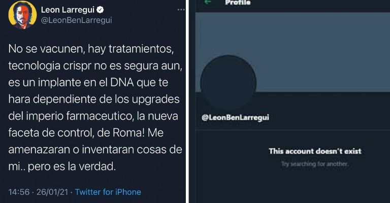 Tras esto, la cuenta del vocalista deZoéfue cancelada, pues al buscar el perfil de @LeonBenLarregui, solo aparece un mensaje en el que se indica que ya no existe.