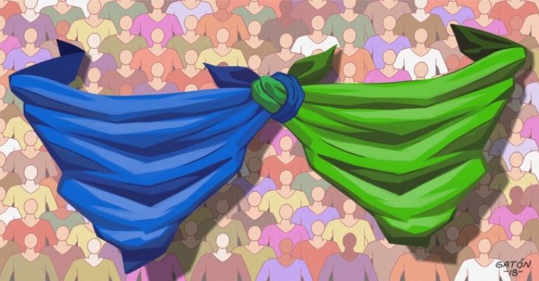 En el extremo opuesto se encuentran los proaborto que portan un pañuelo verde, afirman que una mujer que está embarazada debe ser libre de elegir si quiere realizar un aborto o no, en caso de que la mujer necesite o quiera, debe ser llevado de forma gratuita, legal y segura.