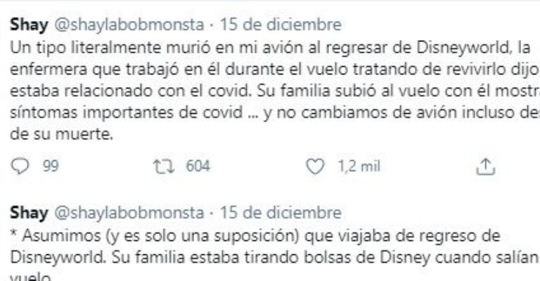 Mientras que algunas otras personas que iban en el mismo vuelo no tardaron en expresarse por medio de su cuenta deTwitterdonde revelaron que conforme los pulmones del pasajero se hinchaban se podía escuchar a los los huesos fracturarse, indicando asó que la infección estaba en etapa avanzada.