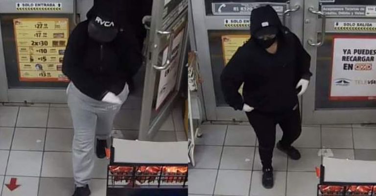 Las cámaras de seguridad del establecimiento captaron el momento en que dos personas del sexo femenino entran al lugar usando gorras y cubrebocas para cubrirse el rostro, además ambas llevan guantes blancos y visten ropa oscura, solo una de ellas lleva pants gris.