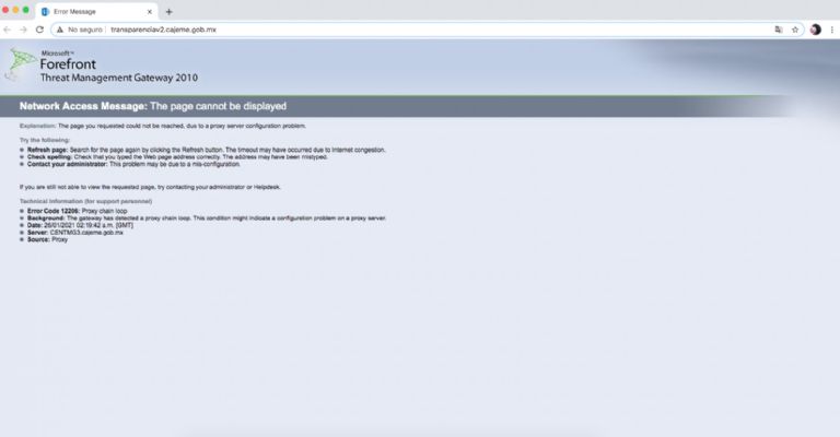 Desde mediados del presente mes el portal dejó de funcionar y las autoridades correspondientes no tienen una solución aún, lo cual ha despertado la inconformidad de asociaciones civiles locales y titulares de cámaras empresariales. Al entrar a la páginahttps: //www.cajeme.gob.mx/en el apartado de ‘transparencia’ manda a la ligahttp://transparenciav2.cajeme.gob.mx/la cual marca error, “Network Access Message: The page cannot be displayed”, menciona el banner que aparece en pantalla.