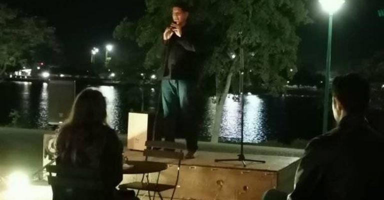La iniciativa surgió hace aproximadamente cinco meses, con la intención de reactivar las actividades del gremio artístico tras la pausa por la pandemia. Desde entonces el micrófono fuera de una cafetería ubicada en la Laguna del Náinari se ha convertido en el medio por el cual artistas y transeúntes pueden disfrutar de la literatura en un momento del día: