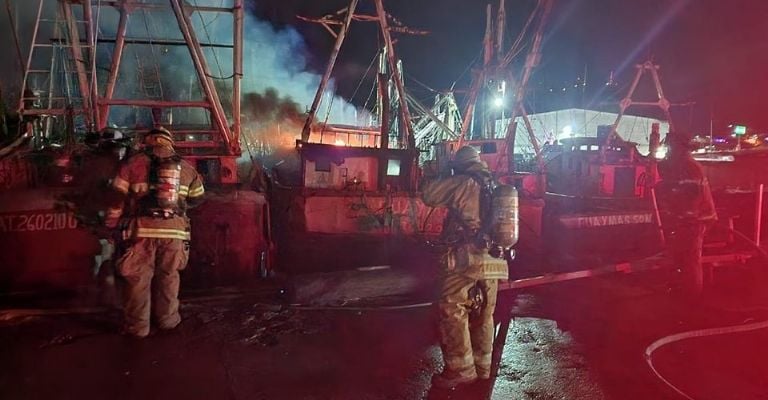 Fue en el muelle ‘Los Cuates’, ubicados frente a la coloniaPunta Arenase estaba incendiando un barco, por lo que se solicitó el apoyo de elementos de ‘los apagafuegos’, al mando del comandanteJuan Carlos González Vegaacompañado del segundo comandante, Francisco Cortés, así como del responsable deAtención a Emergenciasde laUnidad Municipal de Protección Civil, Julio Alfonso Machado Soto.